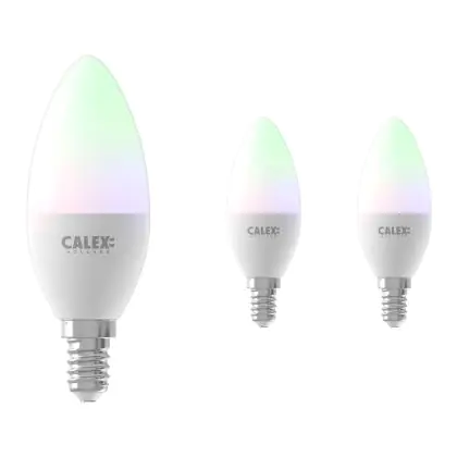 Confezione Multipack 3x Calex Smart Tuya Wifi E14 Candela 5W 470lm - 822-840 Regolabile Bianca | RGBW - Dimmerabile - Sostitutiva 40W
