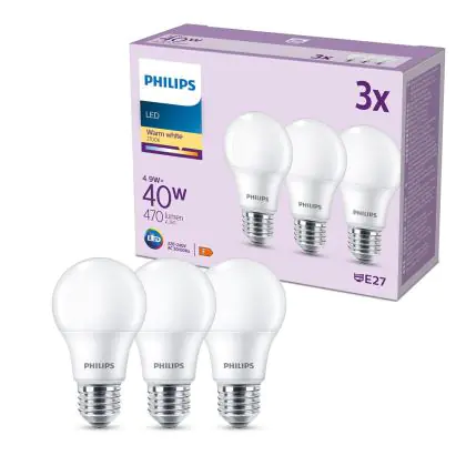 | Nome del fabbricante | Box 3 stuks - Philips LED Lamp Mat - 40 W - E27 - Warmwit licht | |