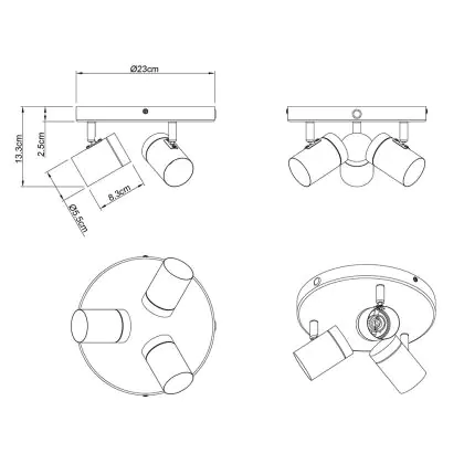 Compatibilità con 3 lampadine GU10: Progettato per accogliere 3 sorgenti luminose GU10 (max 35W ciascuna), per un’illuminazione efficace e mirata.