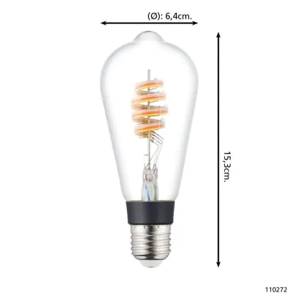 Grazie al suo consumo di soli 4.9W e la sua lunga durata di 15000 ore, puoi risparmiare fino al 60% di energia e con costi di manutenzione abbattuti. Le tradizionali lampadine a incandescenza durano solamente 1000 ore. Installare la lampadina LED è veramente facile, basta svitare la vecchia lampadina E27 ( una volta fredda ) e avvitare successivamente la nuova lampada di Eglo con forma Edison nel portalampade. Questo prodotto di Eglo è di qualità professionale.