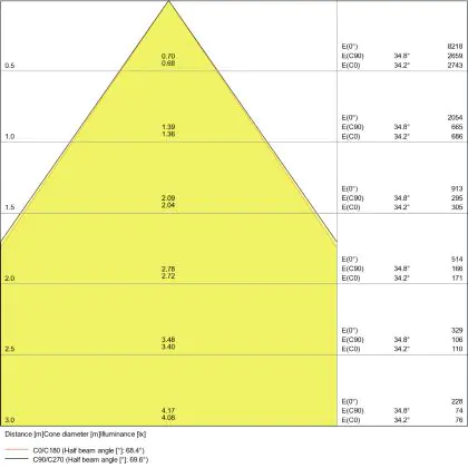 Il codice colore è una combinazione di resa cromatica (CRI) e colore della luce (Kelvin). La prima cifra indica la resa cromatica (1 = resa del colore molto bassa, 9 = massima resa del colore), mentre la seconda e la terza si riferiscono al colore della luce. Esempio: il codice colore 830 indica una buona resa cromatica (8) e luce bianca calda (3000K). |
