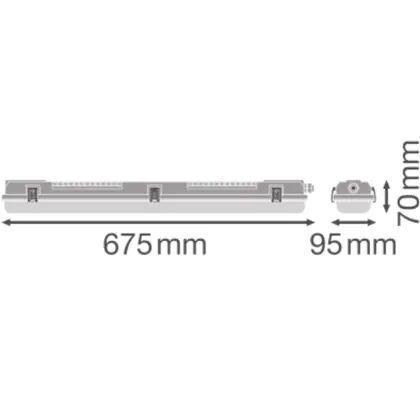 Questa reglette  ha una lunghezza di 675mm e tecnologia Apparecchio senza lampadina. Inoltre ha una durata di circa  ore un wattaggio di solo  Watt. Questo apparecchio di illuminazione durerà quindi molto a lungo, consumando poca energia.