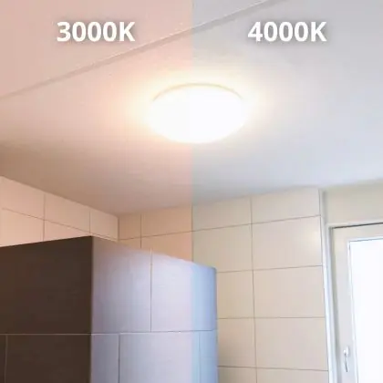 Per scegliere un apparecchio di illuminazione bisogna anche considerare dove verrà installato. Per esempio la luce di 2700 Kelvin (bianco molto caldo) e 3000 Kelvin (bianco caldo) creano un’atmosfera rilassante e piacevole. Questa tonalità è quindi molto adatta ad ambienti accoglienti o a zone generiche come corridoi, ascensori, disimpegni o pianerottoli. Una luce di 4000 Kelvin (bianco freddo), invece,è più luminosa e fresca ed è quindi adatta come illuminazione funzionale in uffici, aziende, scuole e biblioteche. La temperatura di colore di questa plafoniera LED è 3000K - Luce Calda.