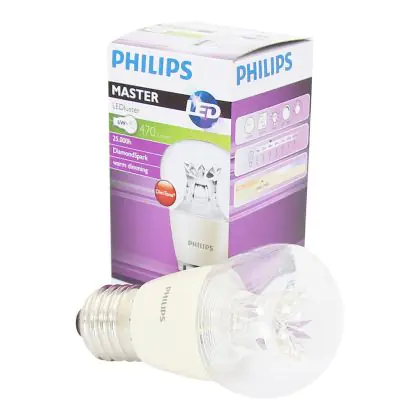 La Philips MASTER LED Lustre E27 Sferica Corona Chiara 5.5W 470lm - 822-827 Dim to Warm | Dimmerabile - Sostitutiva 40W è la perfetta sostituzione per la tua lampada convenzionale 40W con attacco E27 grazie alla sua tecnologia LED. Passare a LED ti offrirà tanti vantaggi!