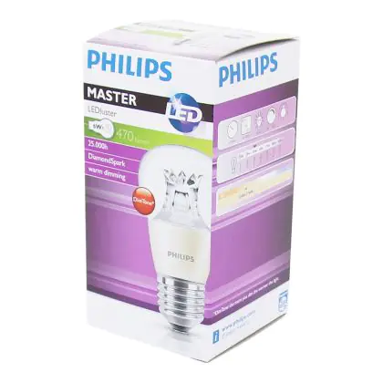 Descrizione Philips MASTER LED Lustre E27 Sferica Corona Chiara 5.5W 470lm - 822-827 Dim to Warm | Dimmerabile - Sostitutiva 40W