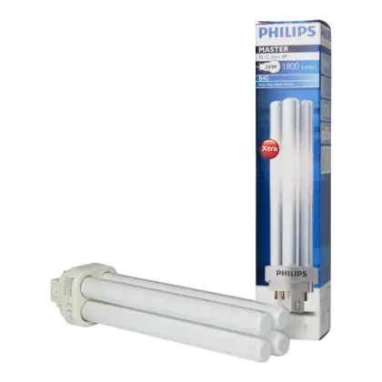Le Philips PL-C Xtra 26W 840 4P (MASTER) sono lampade fluorescenti compatte a basso contenuto di mercurio. Sono molto efficienti e garantiscono performance ottimali di illuminazione per periodi di accensione lunghi. Tali lampade fluorescenti compatte sono dotate di attacco G24q-3 e la base presenta 4 pin (perni). La potenza delle stesse é pari a 26W. Quando sostituisci le tue lampade fluorescenti compatte é fondamentale scegliere le nuove con il medesimo attacco, numero di pin (perni) e potenza di quelle che stai attualmente usando altrimenti non sarai in grado di installarle.